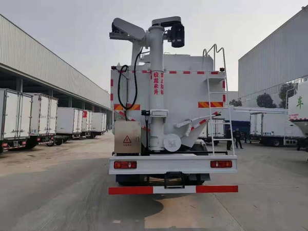 2.罐體實際容積20-24立方,采用橫向一次成型,采用3.0MM優(yōu)質(zhì)高強度錳鋼板焊接而成,焊點均勻,打磨平整;底部采用國標(biāo)U形鋼一體式結(jié)構(gòu),罐體側(cè)面使用加強筋斜撐加固;分3個獨立裝卸料倉,可以同時裝卸多種不同的飼料;