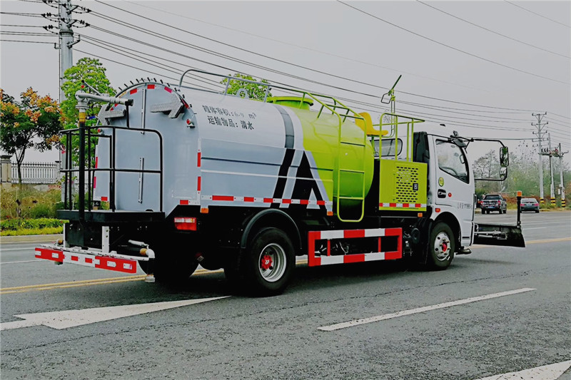 東風多利卡高壓清洗車是一種雙發(fā)動機、雙水泵清洗車,是在標準二類底盤的基礎(chǔ)上,加裝高壓沖洗系統(tǒng)、低壓沖洗系統(tǒng),由機械、液壓(氣路)、電器三部分合為一體的專用沖洗作業(yè)車。本車具有獨立的高、低壓兩套水路系統(tǒng),為清洗車工作提供壓力水源。其工作原理是:利用高壓水泵產(chǎn)生的高壓水,經(jīng)噴水架的高壓噴嘴噴出,利用高壓水流的動能,以高壓力、低流量的方式進行清洗,強力去污,高效節(jié)水,能將路面的陳舊污漬清洗干凈;或高壓水經(jīng)左(右)角噴噴出,清洗路緣、人行道及護欄隔離區(qū);使用高壓噴槍還可清洗路標、廣告牌、高架路等;噴霧系統(tǒng)具有強大的噴霧降塵、噴撒空氣消毒劑及調(diào)節(jié)空氣濕度功能。